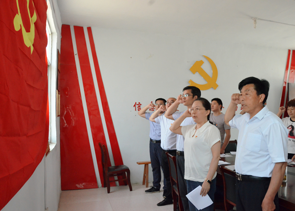 叶莉带领两个支部的党员重温入党誓词,以铿锵有力的宣誓声表达对共产主义事业的无限忠诚和热爱。