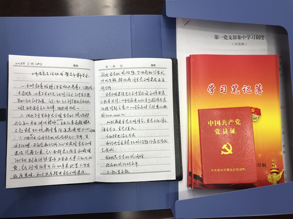 档案里存放党员证、党徽,强化党员身份意识、责任意识,党支部每周开展一次集中学习,每个党员每周自学两次,党员将学习情况和学习心得认真记录存档。