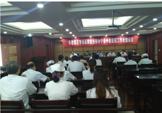 市委第五专项巡察组首先传达了市委书记任泽锋在市委书记专题会议上的讲话精神,要坚持问题导向,发现问题、形成震慑,推动管党治党走向“严紧硬”;要坚持效果导向,压实责任、强化整改,发挥巡察“推动改革、促进发展”的作用,坚决维护群众利益,打通全面从严治党“最后一公里”,确保巡察整改落到实处;要坚持目标导向,持续推动巡察工作向纵深发展。同时,巡察组指出,休宁县中医医院存在:党的领导核心作用发挥不够、专题活动开展不扎实抄袭现象普遍、党的组织建设薄弱、违规兼职(重复)取酬、执行财经纪律不严、业务管理和医院整体迁址重建项目管理混乱等8个问题,并提出整改意见建议,要求休宁县中医医院坚决贯彻落实市委的要求,高度重视巡察反馈意见并认真抓好整改,加强党的政治建设和思想建设,发挥党的领导核心作用;加强行业自律和医德医风建设,推动中医事业健康发展;加强财务管理,严肃财经纪律。