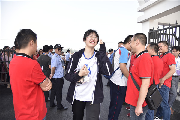 霍邱一中带队教师摆成了“V字”形,表达对考生的祝福