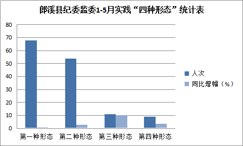 今年以来,郎溪县纪委监委积极践行监督执纪“四种形态”,坚持挺纪在前,抓早抓小,在问题线索处置上扩大谈话函询覆盖面,让“红红脸、出出汗”成为常态。1-5月,县纪委监委运用“四种形态”处置142人次。其中,第一种形态处置68人次,第二种形态处置54人次,第三种形态处置11人次,第四种形态处置9人次。