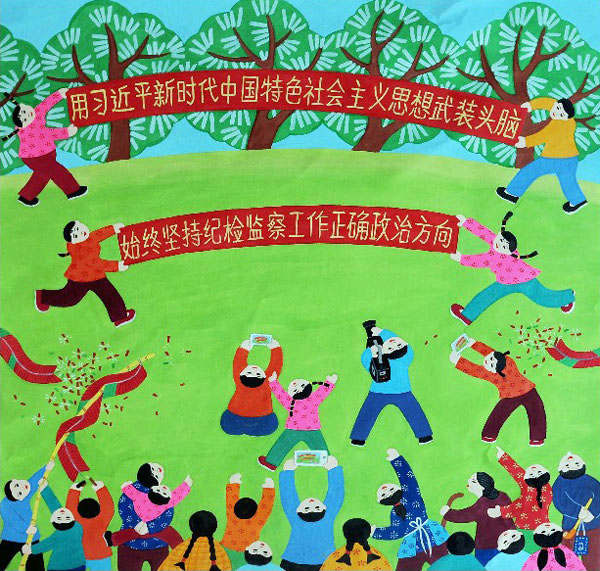 近日,青阳县组织当地农民画画家,将党的十九大和中央纪委十九届二次全会精神与富有浓厚乡土气息农民画相结合,生动解析党风廉政建设新形势、新提法、新要求等,把廉政教育的“硬框框”转化为通俗易懂的图像语言,使广大干部群众在耳濡目染、潜移默化中接受廉政文化的熏陶,一幅幅散发着“泥土芬芳”的农民画散发缕缕廉政新风。