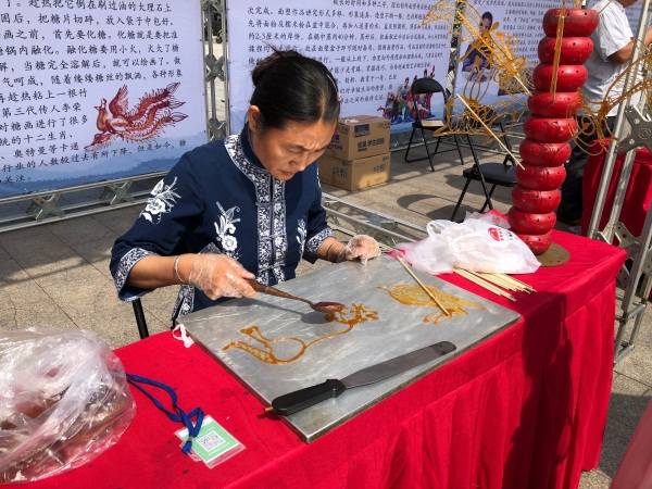 李氏糖画主要在淮北乡村流行,所画的飞禽走兽、花鸟虫鱼等形象栩栩如生。李氏糖画以红薯糖为主,再加少量的白糖,红糖为原料,用温火将糖慢慢溶解,当糖完全溶解,色泽稍微变黄,大泡变成小泡就可以绘画了,趁热把糖浆倒在刷过油的大理石上,冷却凝固即成精美的糖画。
