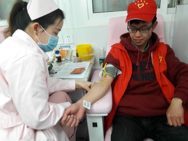 90后青年志愿者——安徽省徽州学校机械数控专业教师程航自告奋勇地参加无偿献血。
