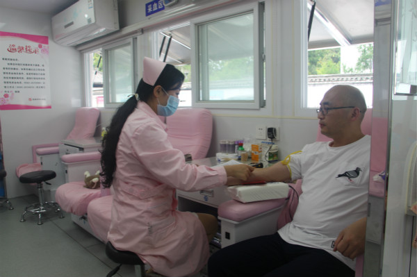 党员领导干部——板桥头乡乡长曹承斌一早来到献血点,带领基层党员干部大力弘扬爱心互助、无私奉献的社会美德。