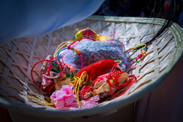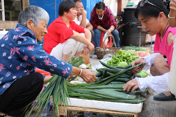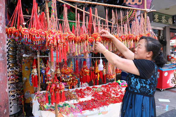 街上的生意人抓住商机,街头摆摊、穿街走巷卖香包。