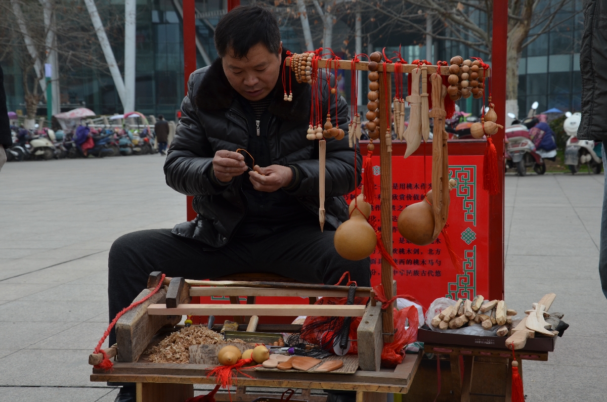木雕—非遗传承中的木文化。各式各样的木雕工艺品既饱含中国的吉祥文化,又体现了极高的木雕艺术价值。图为埇桥区木雕艺人在大秀技艺。