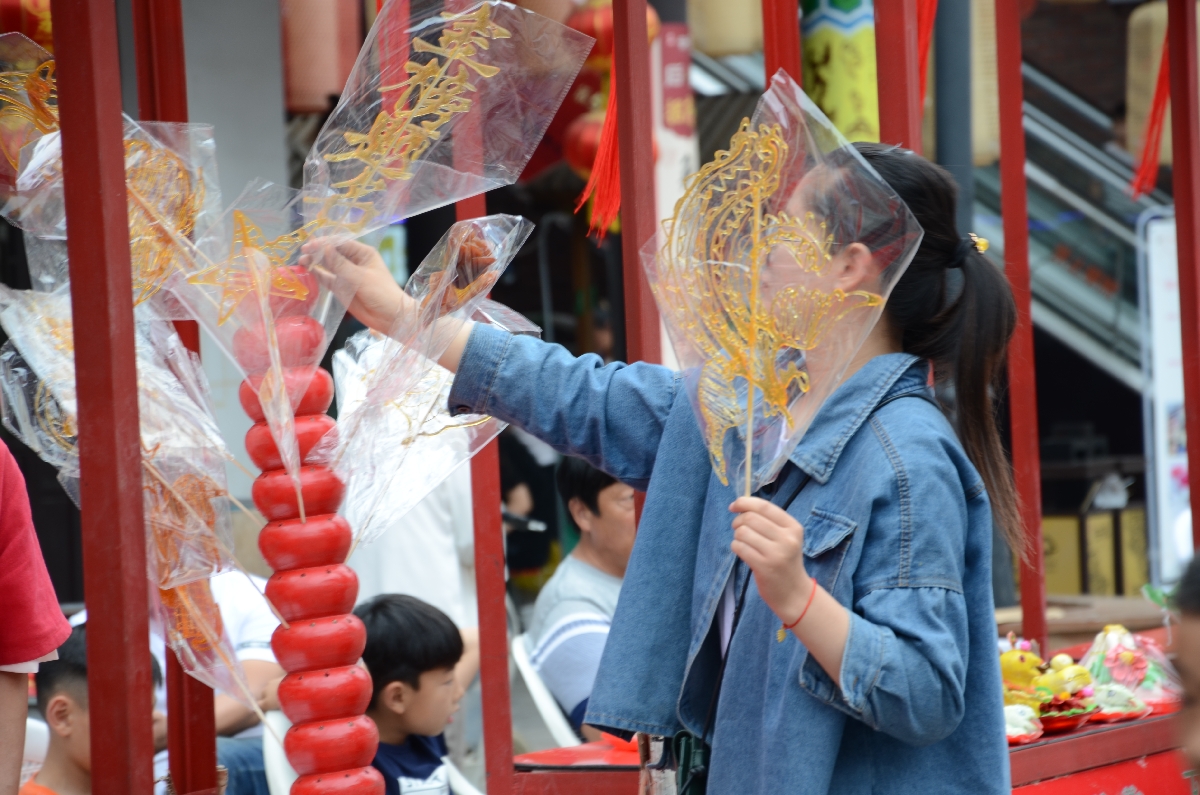真正有生命力的非遗都是被时代所需要的,让非遗融入时代,融入需求是传承的关键。图为刚参加完高考的女孩手拿刚刚制作好的糖画,另外一只手准备拿那只“金榜题名”的糖画,希望今年考试旗开得胜。(宿州埇桥区纪委监委 魏海云)