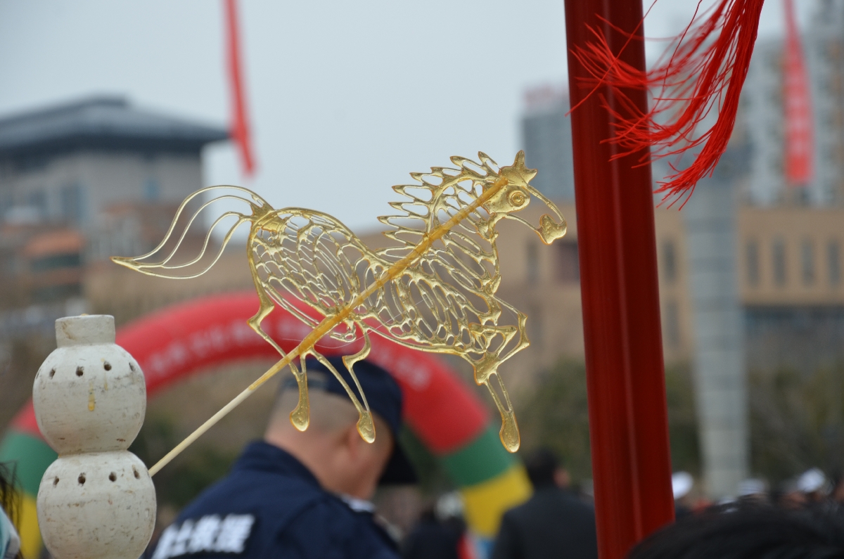 在绘制造型时,民间手工艺人用小汤勺舀起溶化了的糖汁,在石板上飞快地来回浇铸,画出造,可见手上功夫便是造型的关键。当造型完成后,随即用小铲刀将糖画铲起,粘上竹签,糖画形象栩栩如生。