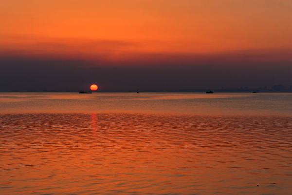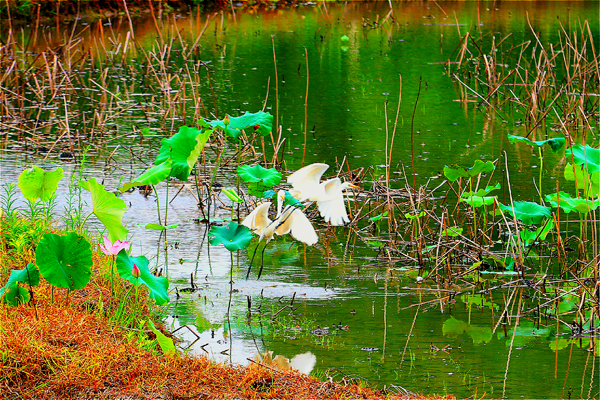 暮色微雨波心绿 碧叶红莲白鹭飞