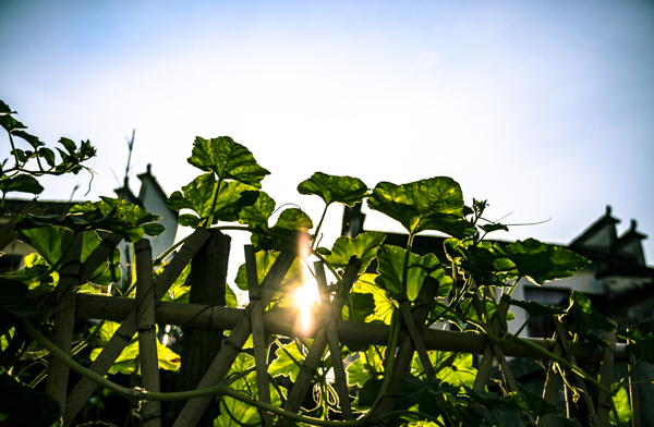 叶细枝柔傍阑干 竹篱向空挂玉帘