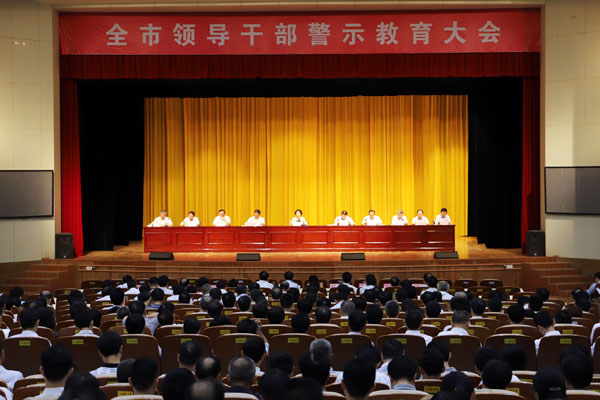 6月21日,池州市委召开全市领导干部警示教育大会,贯彻落实全省“讲忠诚、严纪律、立政德”专题警示教育有关要求,通报我市近年来查处的党员干部违纪违法典型案例,进一步严肃纪律规矩,推动全面从严治党向纵深发展,为“三优池州”建设营造风清气正的良好政治生态。市委书记王宏出席会议并讲话,市委副书记、市长雍成瀚主持会议,市人大常委会主任金庆丰,市政协主席张夏林,市委副书记聂爱国等在家的市四大班子领导和各地各部门副处级以上干部,驻池有关单位党委(党组)书记和负责纪检工作的主要负责同志参加会议。