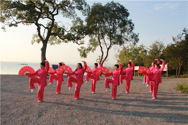 氤氲荷塘碧波荡漾,南漪湖堤岸曲折。随着舒缓的乐曲响起,阿姨们立身中正、凝神敛气,开始了太极表演。野马分鬃,刚劲有力;白鹤亮翅,舒展大方。一招一式,刚柔并济,行云流水。