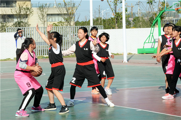 “女孩子打起球来也是很帅气的……”一场别开生面的中学生女子篮球赛正在激烈地进行着。小姑娘们个个英姿飒爽,在场上你来我往、奋力奔跑运球,彰显了青春的活力。