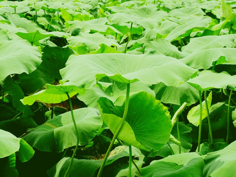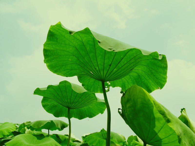 夏日里的荷叶是一首清凉的小诗,似潺潺流水、韵味悠长。那碧翠欲滴的荷叶,像撑开的一张张绿伞,有的轻浮于水面,有的亭立在碧波之上,似层层绿浪,如片片翠玉;那层层的叶子中间,零星地点缀着些白花,有袅娜地开着的,有羞涩地打着朵儿的,微风过处,送来缕缕清香……