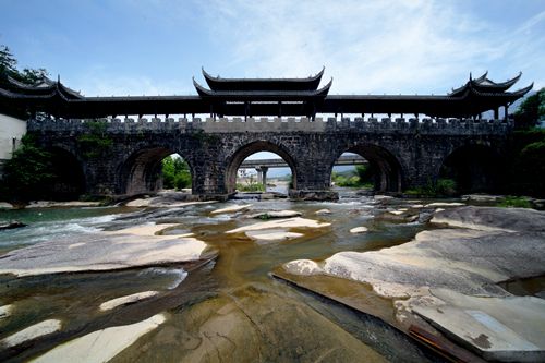 位于村南水口的元代石拱桥——永济桥,5孔,长58米,宽4.5米,高7米。元至正十年(1351年)始建,明永乐间修桥上廊亭、桥东茶亭,廊亭为12梁24柱歇山顶飞檐结构。