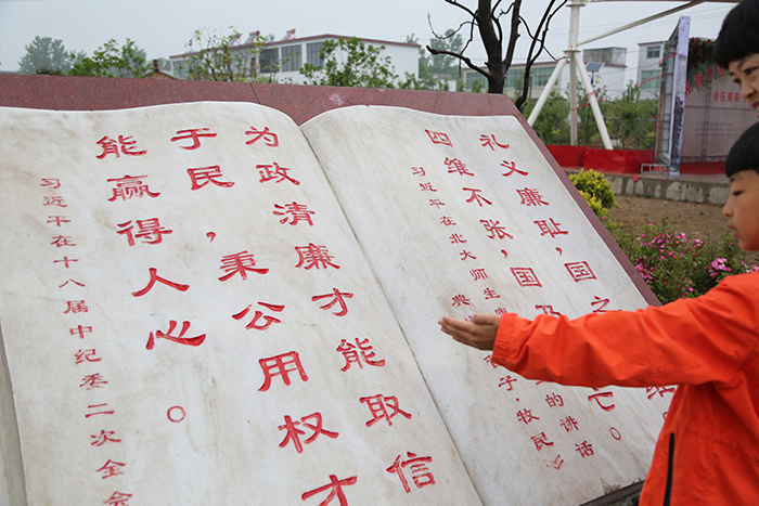 图为界首市泉阳镇结合美丽乡村建设,在该镇杨庄村农民文化广场设置的廉洁文化景观