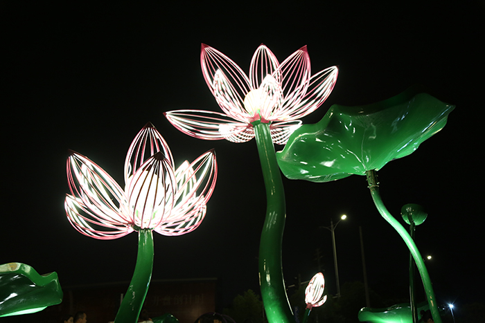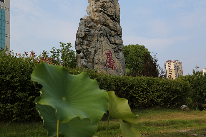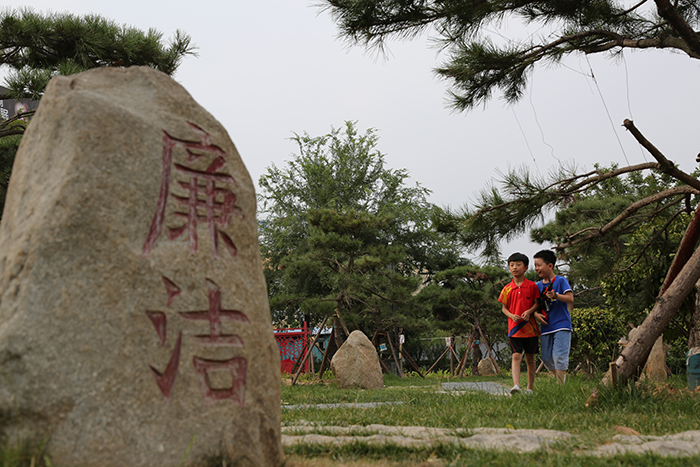 图为界首市在街头游园设置的寓意清正廉洁的廉政文化景观