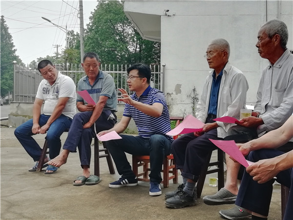 广德县东亭乡党委书记带领乡村党员干部进村入户,与群众面对面,宣传“两禁两简”移风易俗,认真倾听群众意见建议,获得群众一致认同和支持。