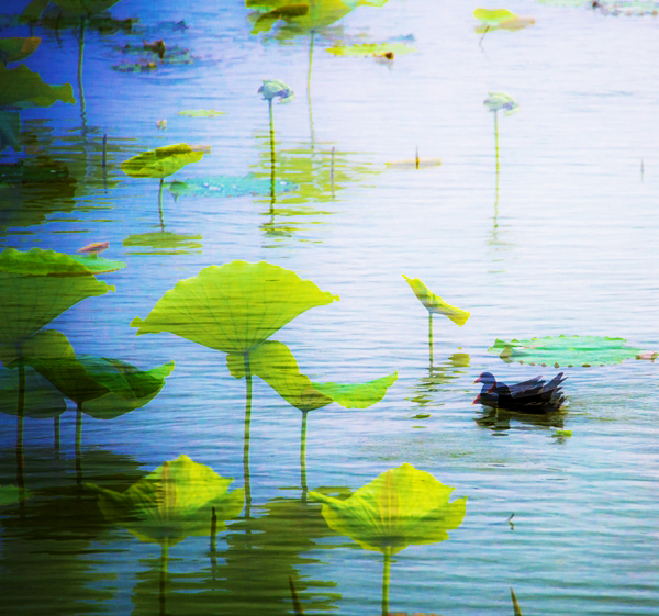 万叠水纹罗乍展,一只鸂鶒绣初成。