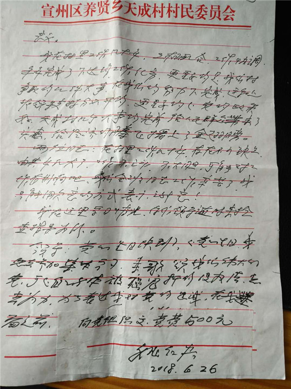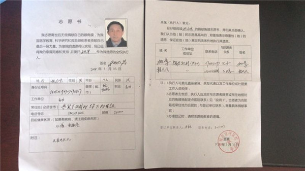 今年72岁的姚仁宏是安徽省宣城市宣州区养贤乡天成村村民,生前一直将党视为母亲,对“母亲”交代的每项任务都饱含深情。当他被病魔缠身时,在生命的最后时刻,用书信向“母亲”告别,自愿签下遗体和眼角膜捐献志愿书。