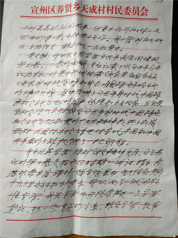 “2016年,我的身体状况有些好转,可以静心思考,那时我就开始想着写信的事,想着怎么在信中向‘母亲’汇报思想,再想着怎么说出缺席的事,写了很多次,也修改了无数遍,好在6月26日这天完成了这封写给‘母亲’的信。”姚仁宏几度哽咽。