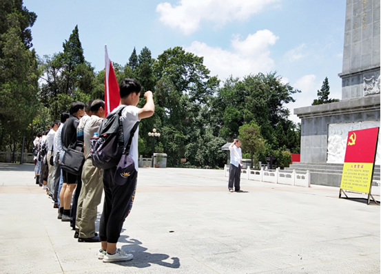 烈士纪念碑下重温入党誓词,砥砺党员同志不忘初心、牢记使命。