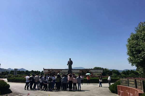 在江上青烈士纪念馆的广场前,一批前来参观的小学生们列队伫立,瞻仰烈士塑像,缅怀革命先烈,锤炼坚强意志。