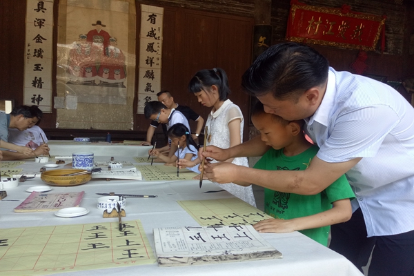 写字如做人,身正、笔直方能骨气洞达。在江氏宗祠内,书法家手把手教授孩子们书法之道和做人之理。