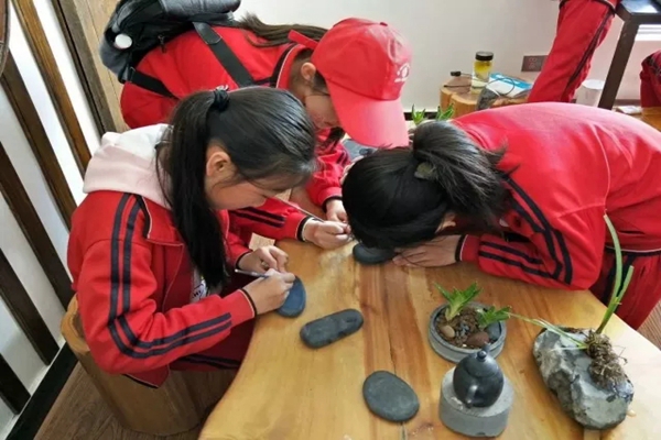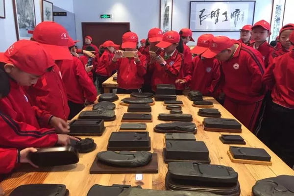 在皖南地区最大的文房四宝研学基地——宣砚文化园,孩子们被形态各异、雕琢精致的砚台深深吸引。