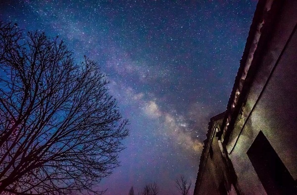 寂静的深夜,古镇已经“入睡”,空无一人。不经意间,抬头便是璀璨的星河。