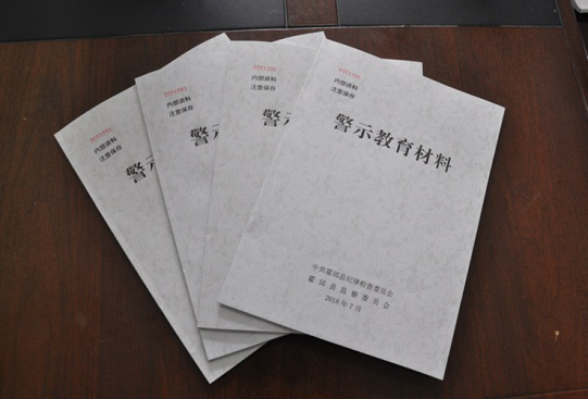 霍邱县“讲忠诚、严纪律、立政德”专题警示教育启动以后,突出用身边事教育身边人,迅速组织人员编写“讲严立”《警示教育材料》,共印1200余册,分发至全县副科级以上党员领导干部。