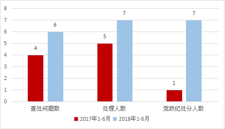 上半年,全县共查处违反中央八项规定精神问题6起,处理7人,给予党纪政务处分7人,分别是2017年同期的150%、140%、700%,释放了“越往后执纪越严”的强烈信号。