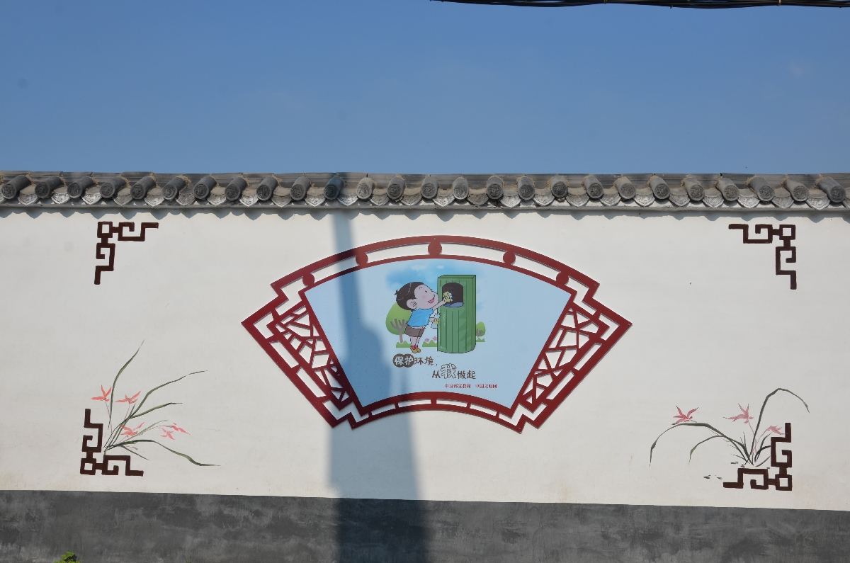 埇桥区沱河街道的社区及街道墙上绘制了生动活泼的环境保护的宣传漫画。