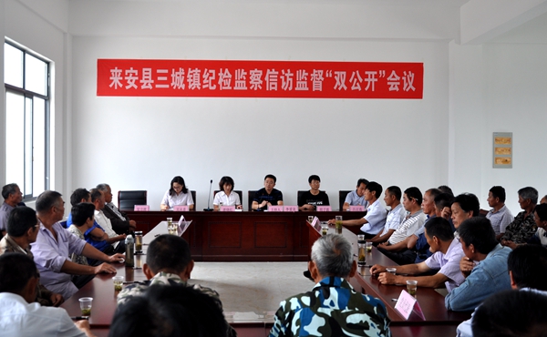 实施信访监督‘双公开’,把问题摆到桌面上来,给群众一个明白,还干部一个清白。近日,来安县纪委组织开展信访监督“双公开”活动,在被反映人所在党支部召开党员会议,现场公开信访举报反映问题及调查处理结果,现场公开接受监督和质询,回应民义,澄清事实。