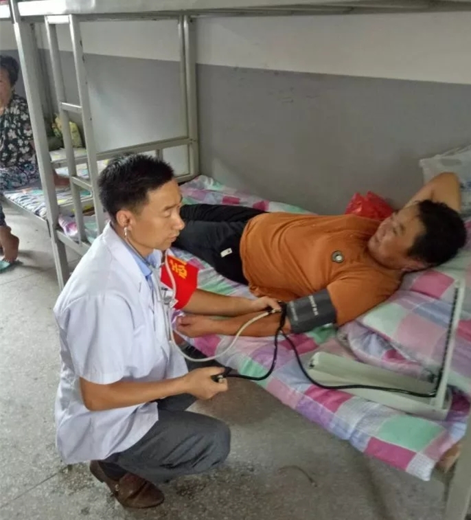 卫生院职工全力参与救灾,为受灾群众检查身体,送医送药。
