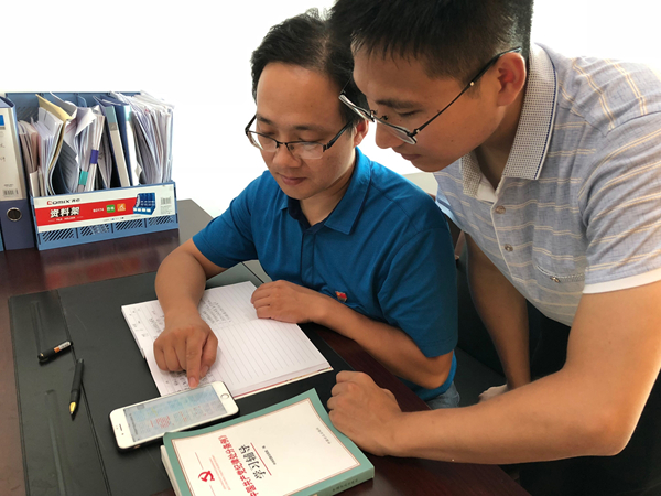 忙里偷“闲”随手学,纪检干部在工作间隙,利用新媒体,随时随地学习《条例》。