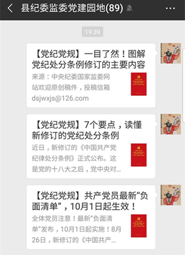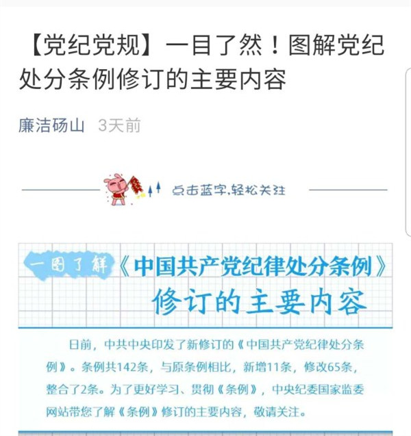 利用砀山县纪检监察网站、“廉洁砀山”微信平台、“清风砀山”微博及时推送新《条例》