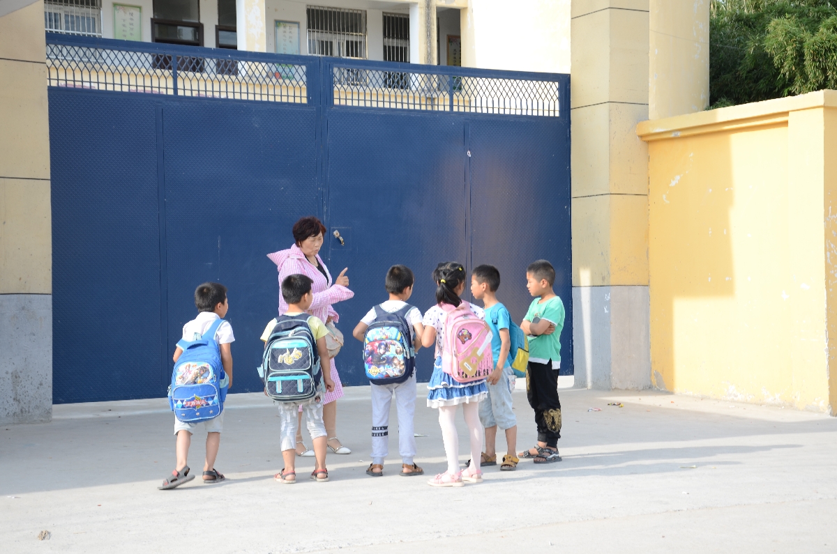 埇桥区祖李小学新生入学第一天,放学后班主任老师一再叮嘱他们路上要注意安全,准时回家。直到看到最后一名学生被家长接回家,她才回家。