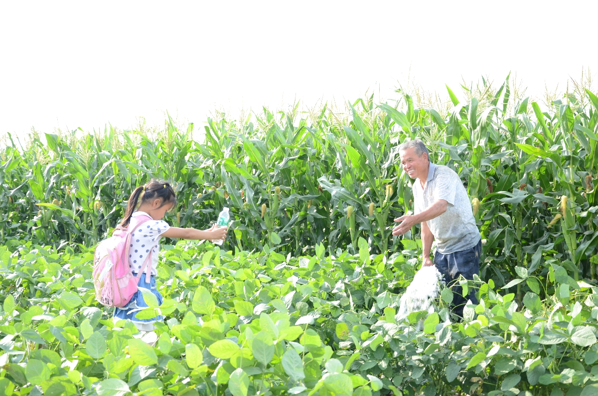 新学期第一天,老师在课堂上布置了一个家庭作业,让学生们回家给家长做一件力所能及的事情。一个上3年级的小女孩,放学后看到爷爷还在地里做农活,细心地给他递去一瓶水。