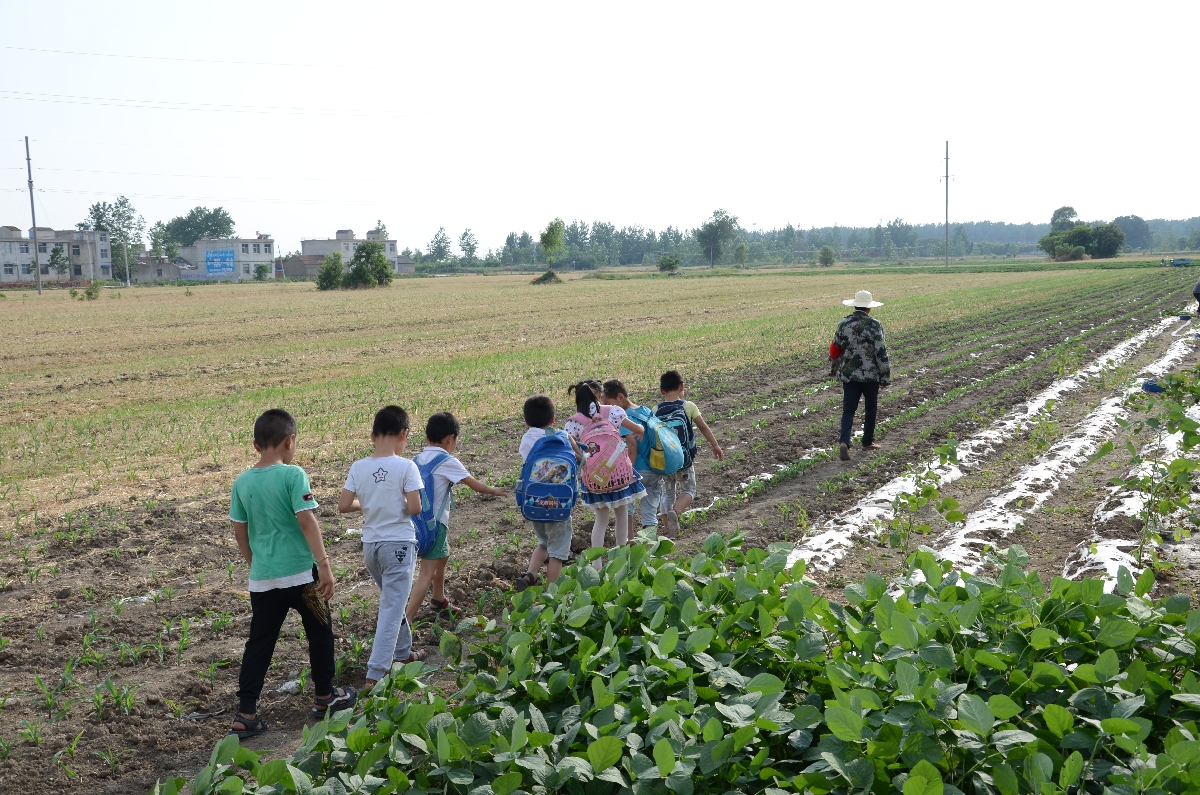 开学第一天,为确保安全,埇桥区芦岭镇的村干部亲自带领村里的留守儿童们顺利走进校园。学生们秩序井然,志气昂扬,穿过乡间小道,开始他们新学期的旅程。