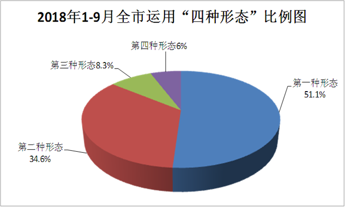 1-9月,全市纪检监察机关运用“四种形态”处理人员1974人次,其中第一种形态1009人次,占比51.1%,增长50.8%;第二种形态683人次,占比34.6%,增长17.2%;第三种形态164人次,占比8.3%,增长65.7%;第四种形态118人次,占比6%,下降10.6%。