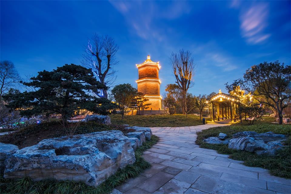 新时代的尤家花园,岁月剥离掉琥珀般的皮囊,浸润着颍城深厚文化的底蕴破茧而出。土石相间的假山,山上古木新枝,生机勃勃,翠竹摇影于其间,藤蔓垂挂于其上;石桥下,一湾池水由西向东,环园南去,池广树茂,烟水弥漫;沿池筑一复廊,蜿蜒曲折,简洁古朴;复廊边的汉白玉石塔,仿佛一只鲜嫩的春笋,永远向上生长;复廊上的花卉图案,使园内之景与园外紫薇相映成趣、相得益彰,自然地融为一体.......