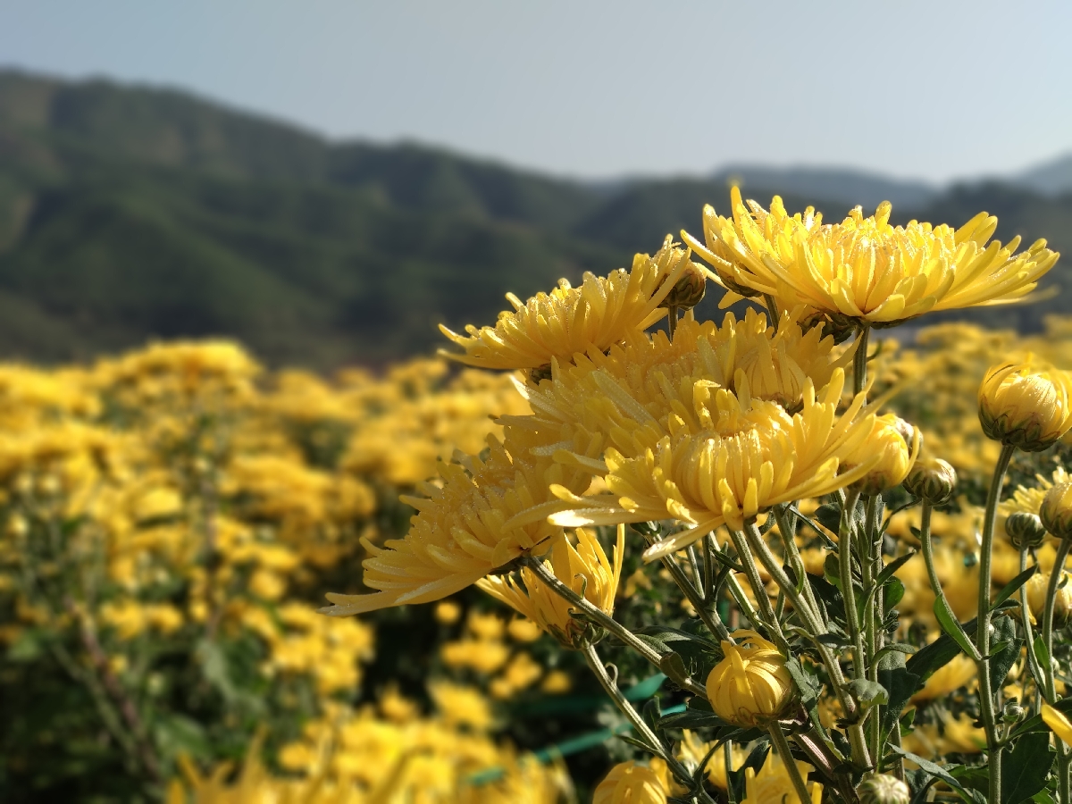 深秋之际,漫山红遍,层林尽染,菊花盛开,正是登高望远的好时节。 菊花散发着淡雅的芳香随风飘动,沁人心脾。