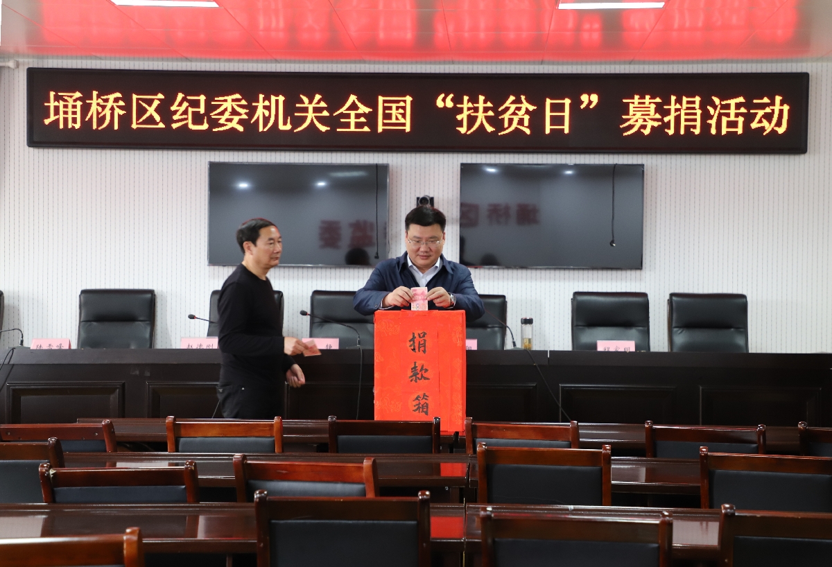 “10.17”国家扶贫日到来前夕,埇桥区纪委监委组织开展2018年“国家扶贫日”募捐活动,宿州市埇桥区纪委监委领导班子成员带头捐款,机关全体工作人员纷纷踊跃捐款,为全区打赢脱贫攻坚战汇聚一份力量。