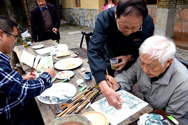 作于光滑瓷板上的画,格外地光彩传神、栩栩如生。两位年长的艺术家一边作画一边交流,以最好的作品向群众展示和传递乡村文化的独特魅力。