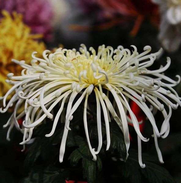 菊花,只有在秋天百花凋零的时候,才能看到那绚丽的身影,它是秋天灵魂所在。寒风吹不断菊花那挻直的脊梁,大雨打不落它那晶莹的花瓣,菊花是与秋风秋雨秋霜中斗士的一员坚强标兵。