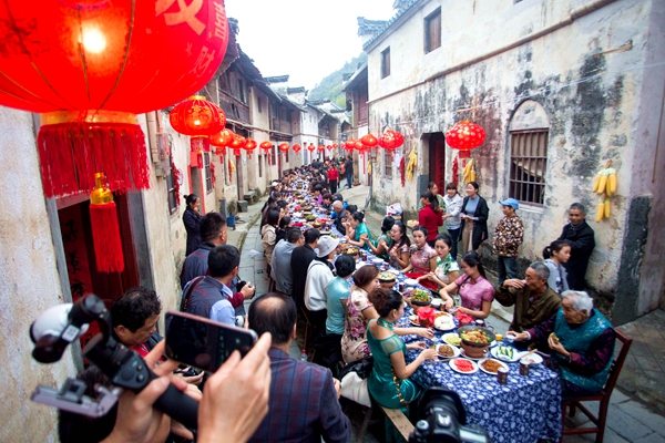 粉墙黛瓦马头墙、青石铺就古街廊。这是一座千年古镇,名“胡乐司”,在古徽州文化的陶冶和熏陶之下,蕴藏了千年的梦。秋高气爽之时,这里摆下了“长桌宴”,迎来了八方宾客。