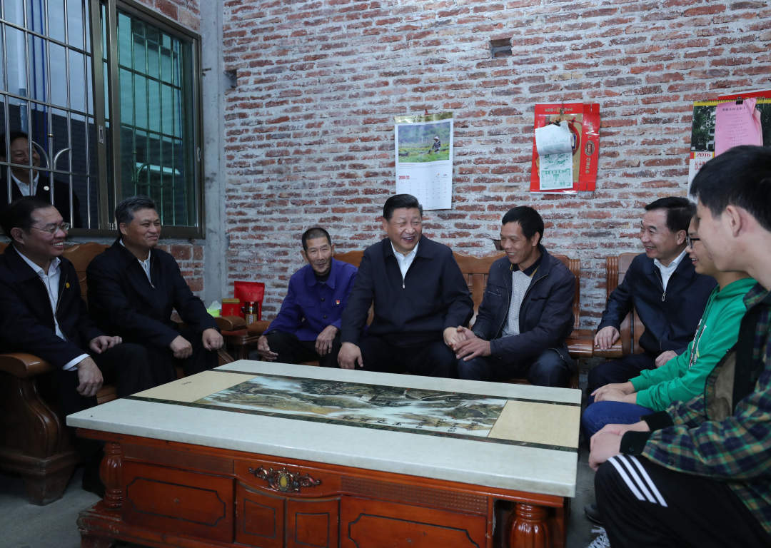 习近平十分牵挂村民生活状况。他走进贫困户陆奕和家,详细了解他的家庭情况,询问他生活怎么样、有哪些困难。习近平还看望了党员、老战士陆上伙。习近平对村民们说,我一直惦记着贫困地区的乡亲们,乡亲们一天不脱贫,我就一天放不下心来。我们党是全心全意为人民服务的党,党的一切工作就是要为老百姓排忧解难谋幸福。全面小康路上一个不能少,脱贫致富一个不能落下。要一代接着一代干,既要加快脱贫致富,又要推动乡村全面振兴、走向现代化。他希望乡亲们生活越来越幸福。