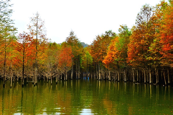 叶色浅深随秋韵 丹朱鹅黄映嫩寒